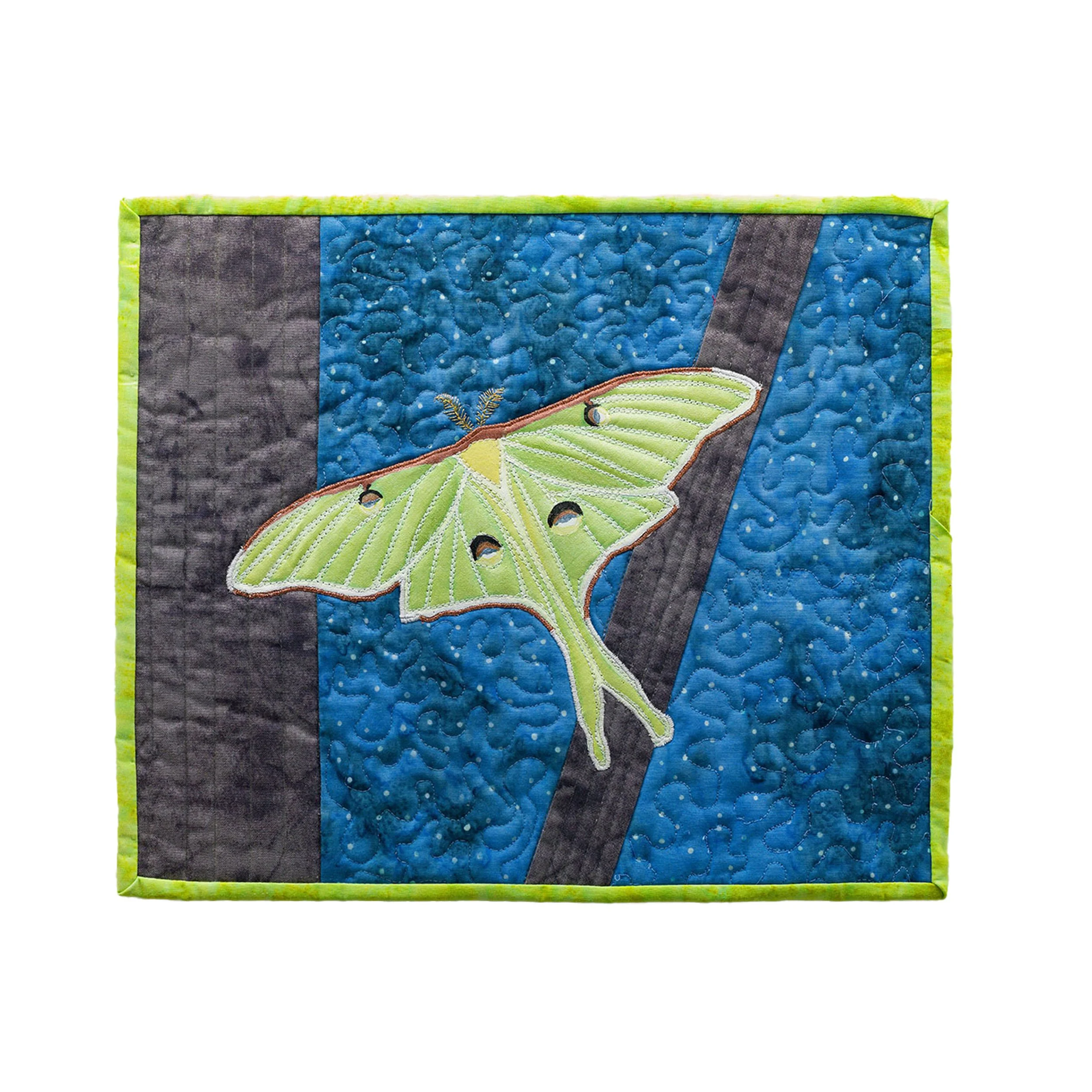 I am passionate about creating art quilts that depict the wild aspects of nature. In particular, I focus on capturing the essence of wild landscapes and the flora and fauna of North Carolina. Many of my quilts examine the beauty found in wild things, such as Luna Moths, whose large wingspan, size, and luminous colors always strike me as awe-inspiring and almost magical. I utilize various techniques, including fabric piecing, fabric painting, free-motion quilting, and hand stitching. I use each technique intentionally to capture the essence of wild locations and creatures around us. Dimensions: 12.75 " x 11"