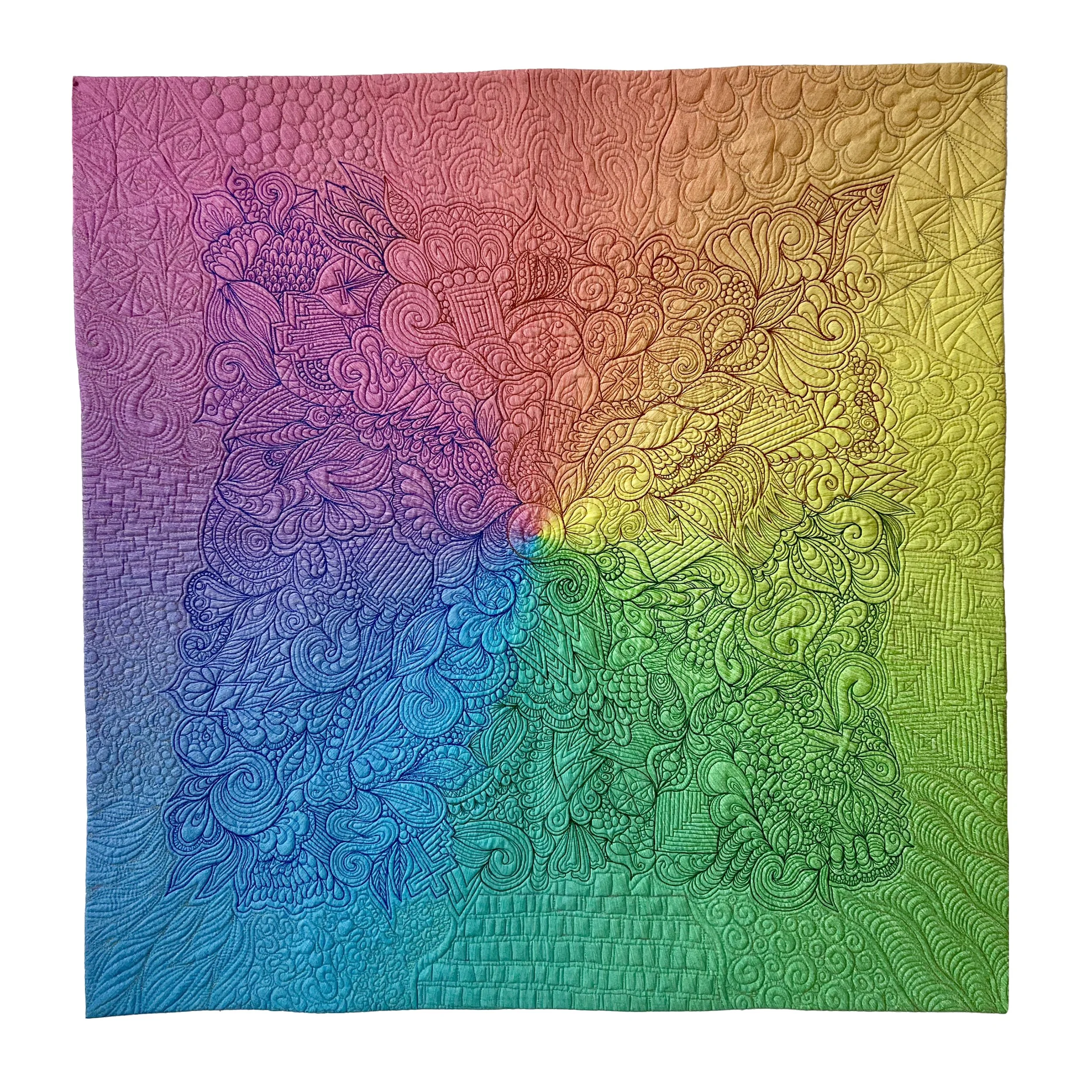 As a textile artist, I create quilts and thread-painted wall hangings that explore texture and design. Drawn to improvisational and abstract approaches, I experiment with threads and fabrics to add depth and dimension to my work. Nature, especially clouds, inspires me, and I’m continually exploring ways to translate their shifting beauty onto fabric. A transformative class with Karlee Porter reshaped how I view art and the world, fueling my passion for discovery. Through my work, I hope to inspire wonder and invite others to appreciate the beauty of texture, pattern, and the natural world. Dimensions: 37.5" x 38"